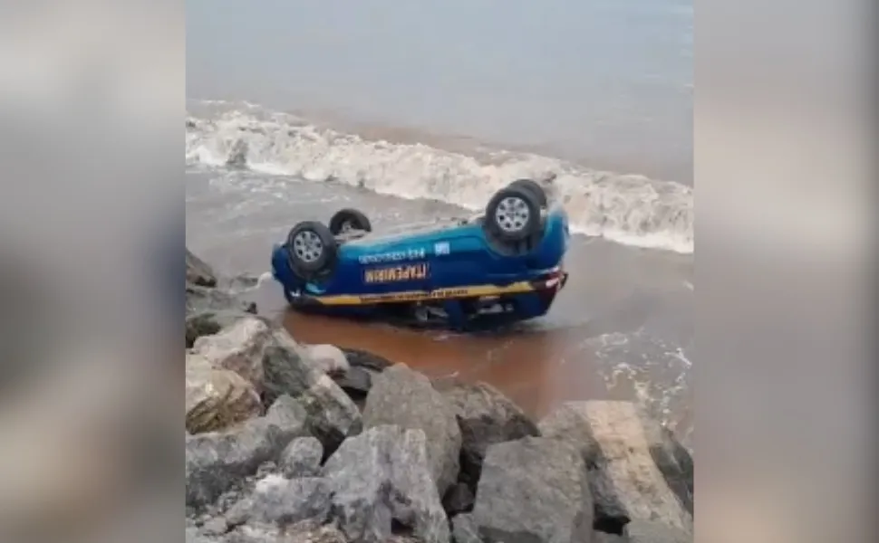 Aluna capota com carro de autoescola e cai no mar durante aula de direção, no ES