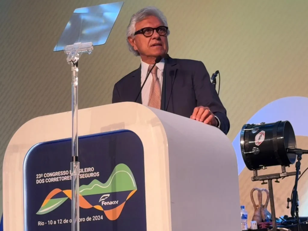 O governador Ronaldo Caiado destacou os investimentos em segurança pública como base para fomentar a comercialização de seguros, durante o 23º Congresso Brasileiro dos Corretores de Seguros, que acontece no Rio de Janeiro (RJ).