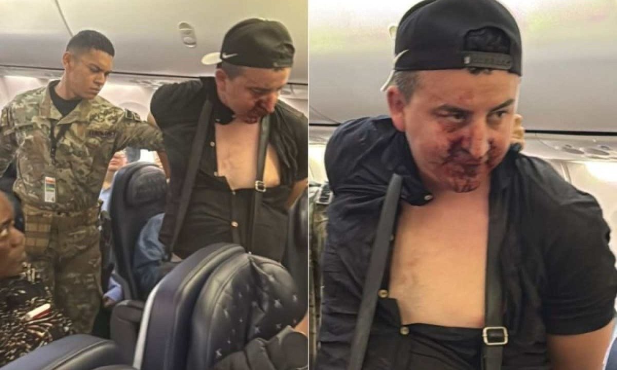 Homem tenta abrir porta de avião durante voo e é contido