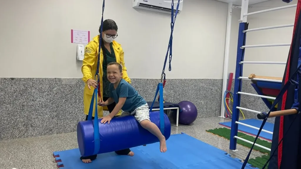 Na sala sensorial do Crer, Luiz Emanuel, 5 anos, aprende novas formas de se conectar com o mundo. Diagnosticado com autismo nível 3, ele é acompanhado, há um ano, na unidade. (Foto: Juliana de Oliveira Saran/Crer)