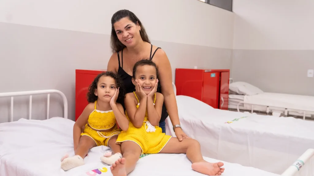 Hóspedes recorrentes da Cigo desde o nascimento, Laura e Laís, acompanhadas da mãe, Liliane, e da tia, Lina, recebem suporte contínuo desde agosto de 2019, incluindo hospedagem, alimentação e assistência médica. A cirurgia de separação ocorreu quando as meninas tinham 1 ano e 5 meses, marcando um novo capítulo em suas vidas. “A OVG nos deu todo o apoio necessário, desde a doação de fórmula infantil até roupas personalizadas feitas pelas voluntárias, enxoval e até um quarto exclusivo, com lactário, na época da pandemia”, relata Liliane Silva dos Santos, mãe das meninas. Atualmente, a família retorna anualmente para avaliações médicas, sempre contando com o suporte o Goiás Social e da OVG.