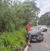 Nas imagens, o motorista, ainda no local da colisão, é questionado por quem está filmando: