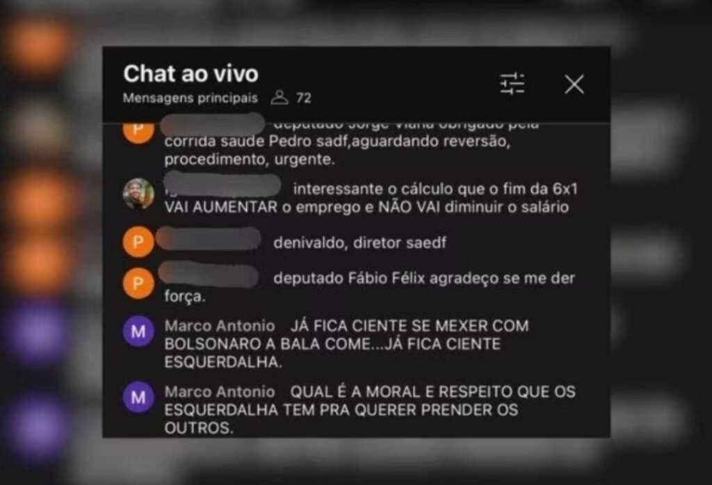 Um internauta ameaçou deputados distritais durante a sessão da Câmara Legislativa (CLDF), na tarde desta terça-feira (19), nos comentários da transmissão ao vivo pelo YouTube.